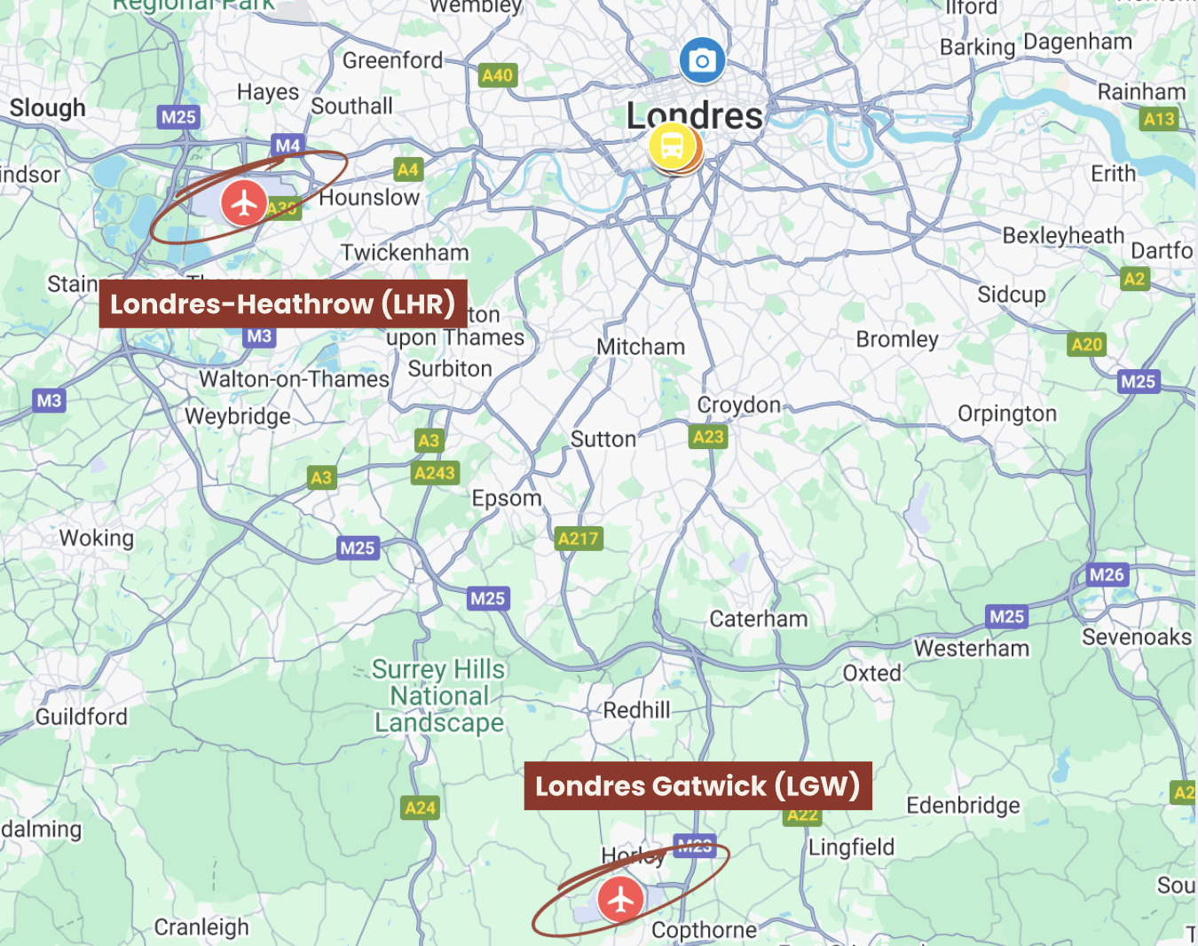 ➕ Un service de navette vers Gatwick (45 km) est disponible sur demande.